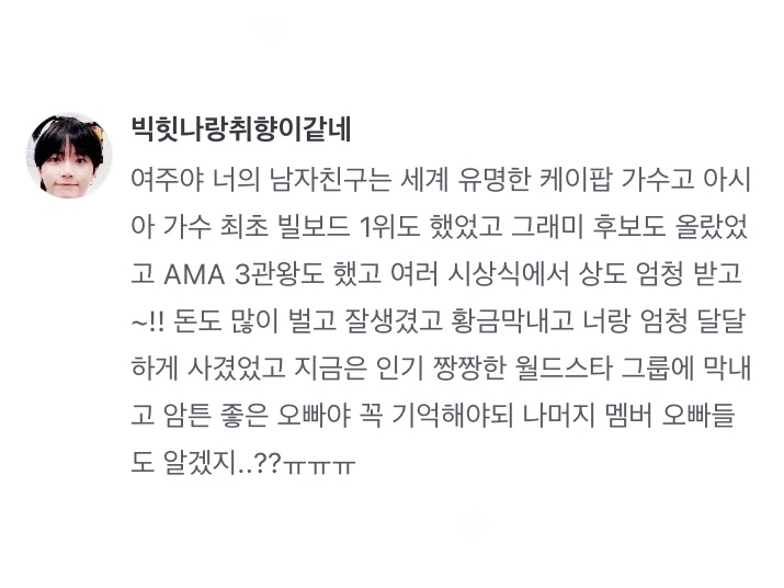 “이렇게라도 여주씨한테 이런말 들으니까 기분 좋네요ㅋㅋㅋㅋ”