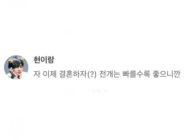 지민이에게 마이크를 돌리며 ) “박지민씨 어떻게 생각하십니까? 이 열애설에 대ㅎ..”