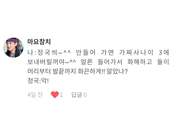 “그러니까요..!!ㅎㅎ 그러서 정국이가 들어갔습니다~!!”