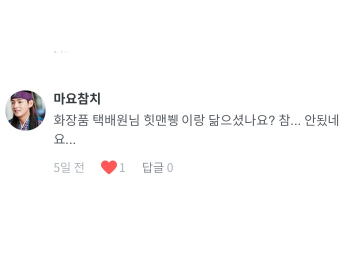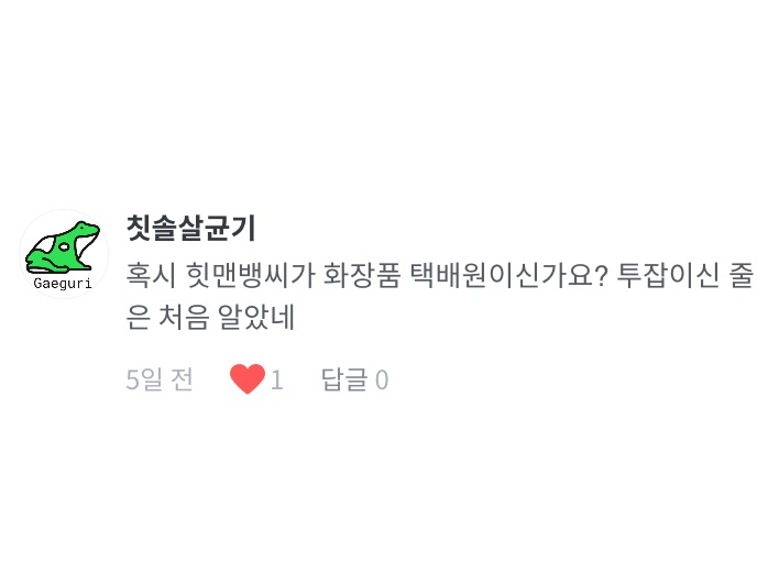 “ㅋㅋㅋㅋㅋㅋㅋㅋ 택배원님이 아니래요!! 맙소사!!ㅋㅋㅋㅋ 힛맨뱅이셨어욤🤭”