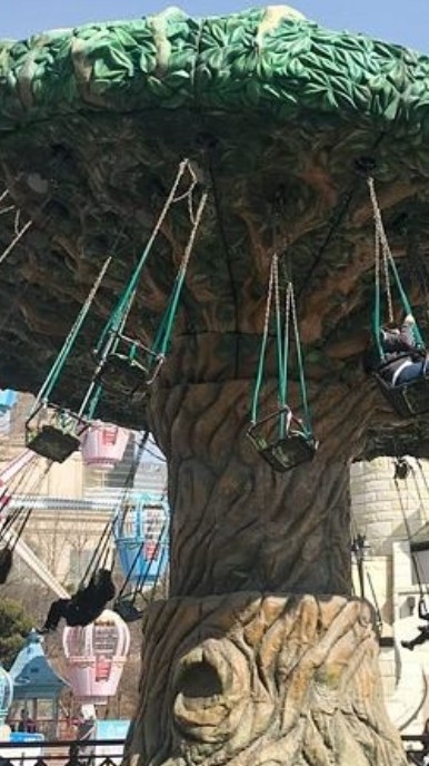 이번에는 같이 고른 회전 그네에 탑승하였다. 다른 어마어마한 기구들 보다는 이게 훨씬 나을 거라고 생각한 것이다.