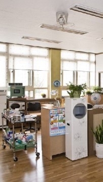 들어가자마자 쌤은 온데간데 없고 지민은 팔에 파스를 뿌리고 있었다