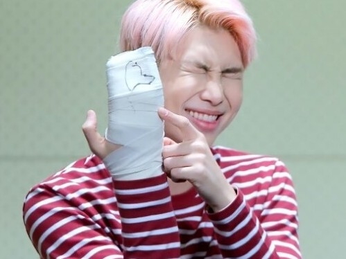 아까 지민이가 붕대에 뭘 끄적이던데..