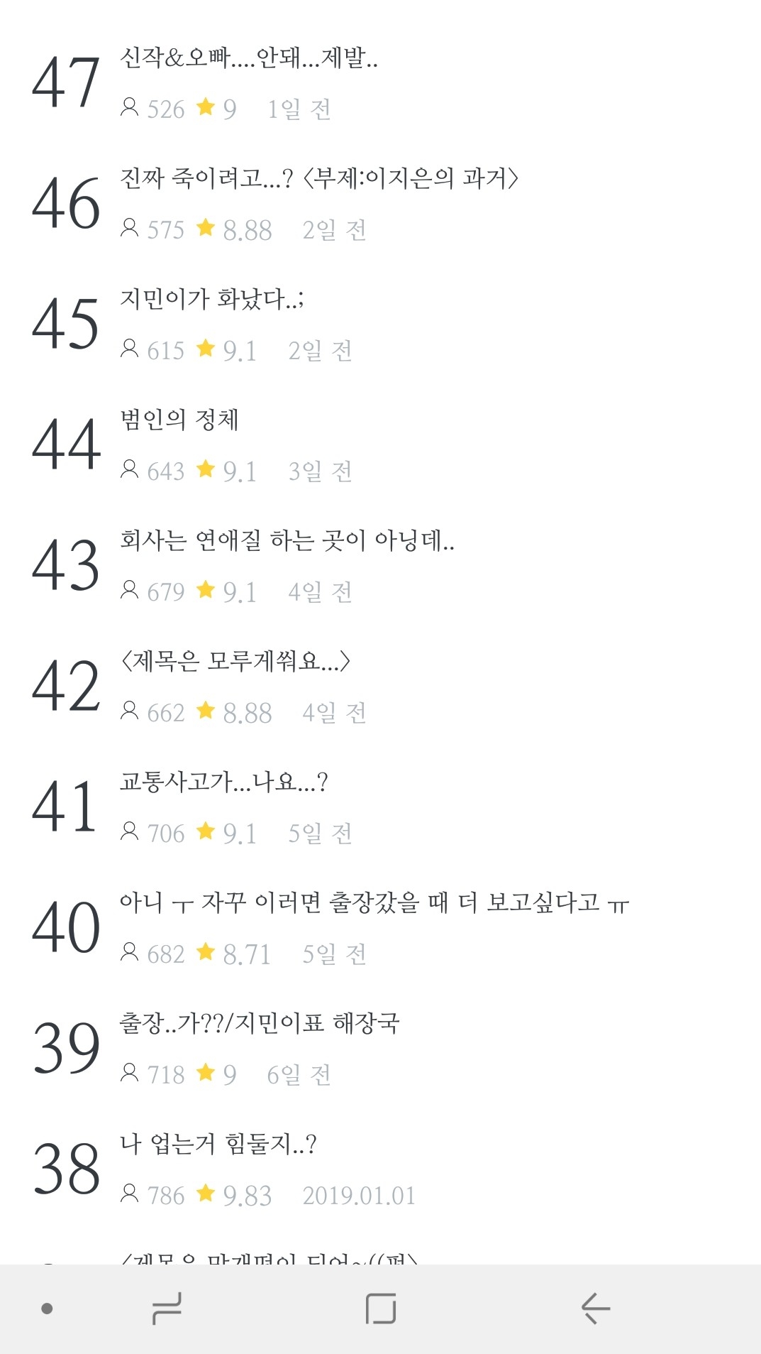 제 작품 중에 평균 별점이 7.02까지 내려가봐서 이런건 아무것도 아니구 ㅎ , 한 에피소드 별점이 4.9까지 내려가봐서..ㅎ