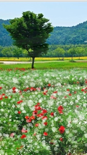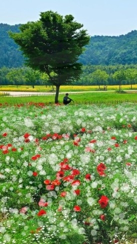 그러던 중 넓은 안개꽃밭을 발견하고 그 옆 나무옆에 앉았다