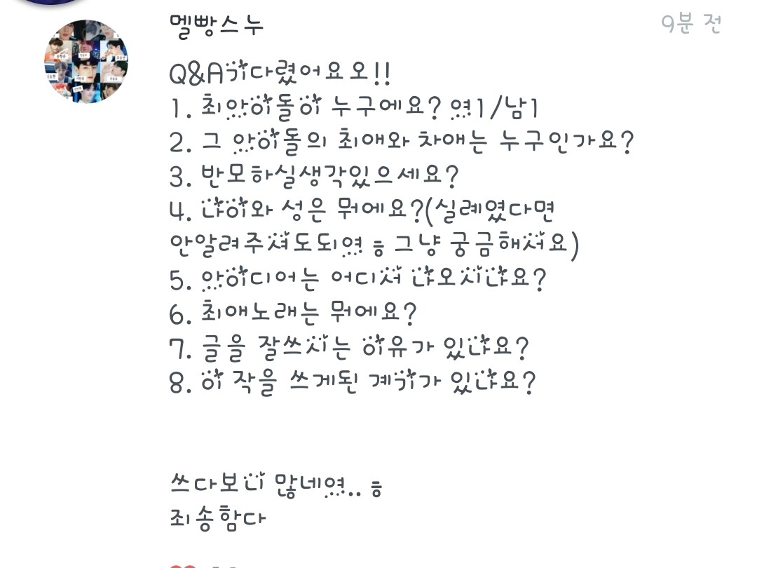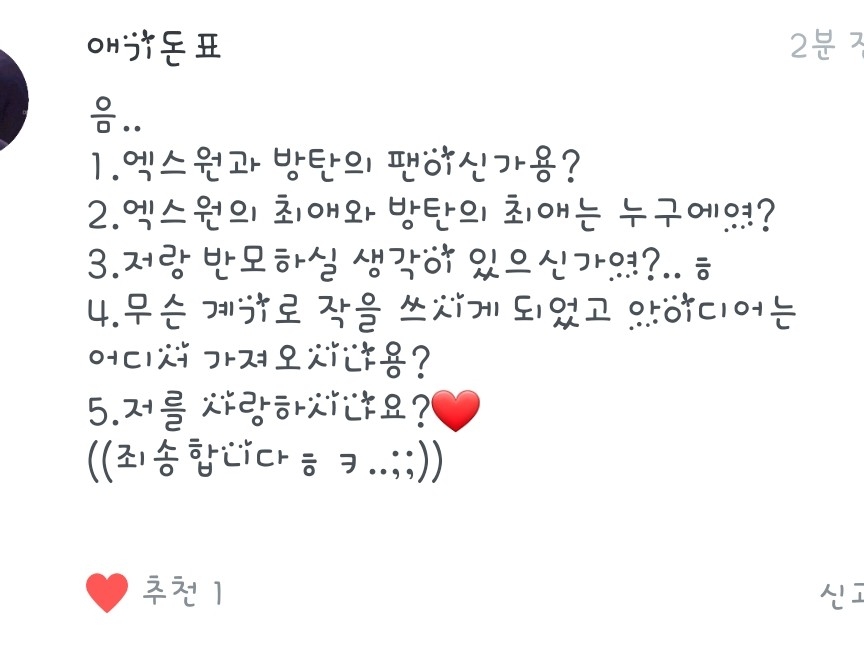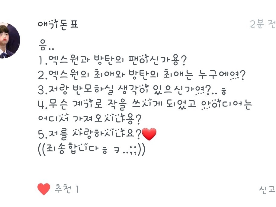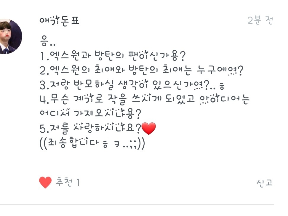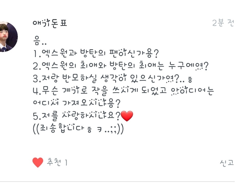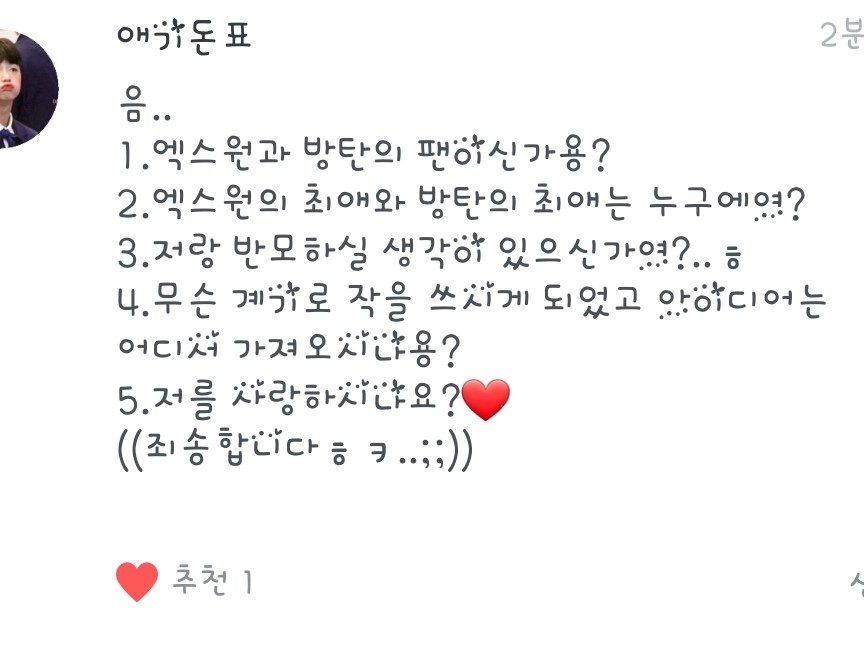 1.원잇이긴 한데요! 아미는 아니에용! 그냥 노래만 즐겨들어요
