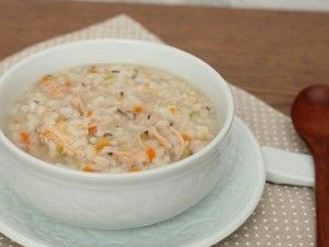 국자로 죽을 뜨는데
