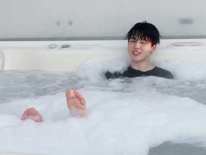 윤기는 나가고 지민혼자남은 화장실. 지민은 윤기와 지킨 약속때문에 아무말도 안하고있다.