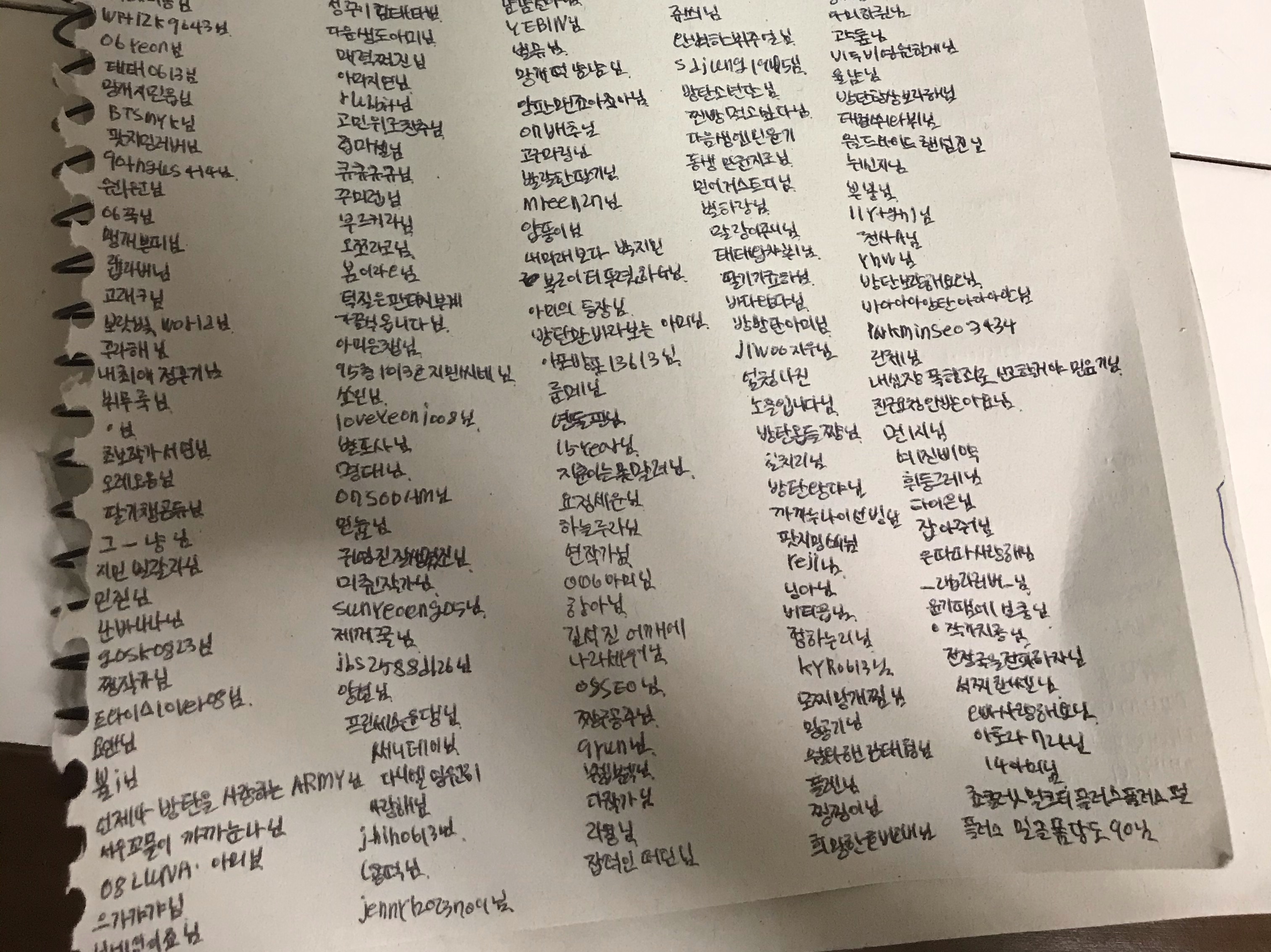물론 손 아프기도 했고 달려라방탄도 포기하고 여러분들 닉네임을 썻어요ㅎ