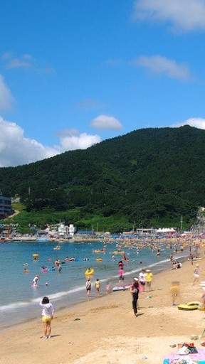 여주,태형,정국이 신나게 바다에서 놀았다