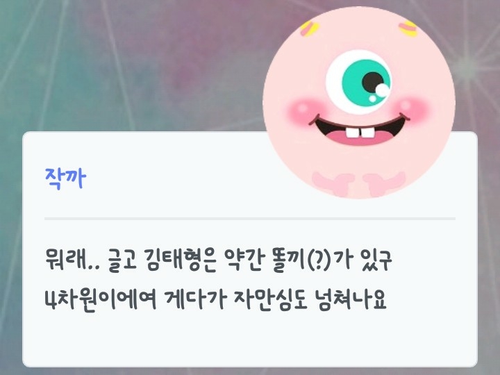 그렇다.. 작까도 김태형 못지않게 잘난척과 자만심이 넘쳐났던 것이다..