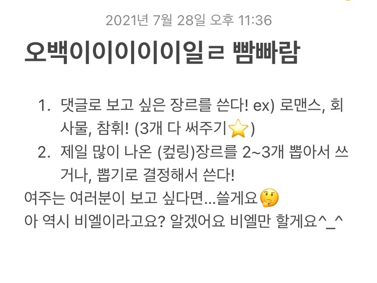 장르라도 남겨주시면 정말 감사하겠구 그럼 전 여기서 안녀어엉👋🏻