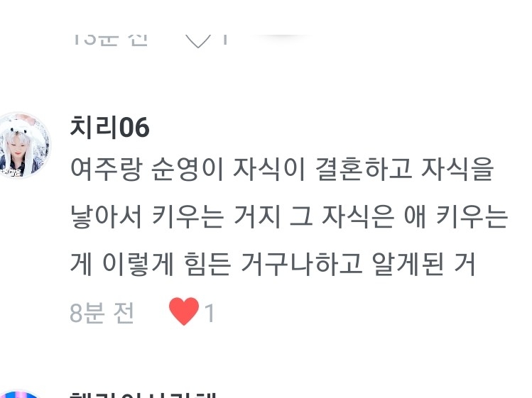Maman ㅠㅠ Je suis tellement fatiguée, je meurs ㅠㅠ Ma fille traverse vraiment la puberté en ce moment. Elle n'aime pas ceci, elle n'aime pas cela. C'est tellement difficile.