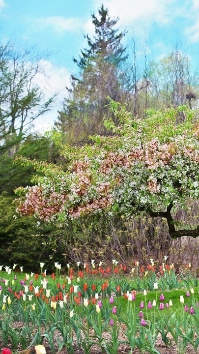 Bien que l'hiver fût presque terminé, les fleurs étaient en pleine floraison et les arbres avaient encore leurs feuilles en pleine floraison.