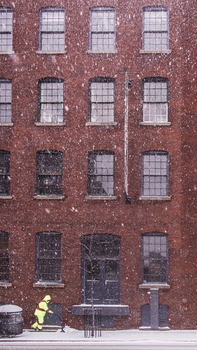 Oui. Il fait froid et il neige, alors dépêchez-vous de monter.