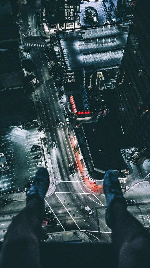 Avancez, asseyez-vous sur la rambarde ouverte et profitez de la vue nocturne sur la ville.