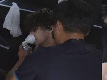 Tae était épuisé. Le docteur Woon lui a donné de l'oxygène. Vous lui avez donné des mouchoirs humides.