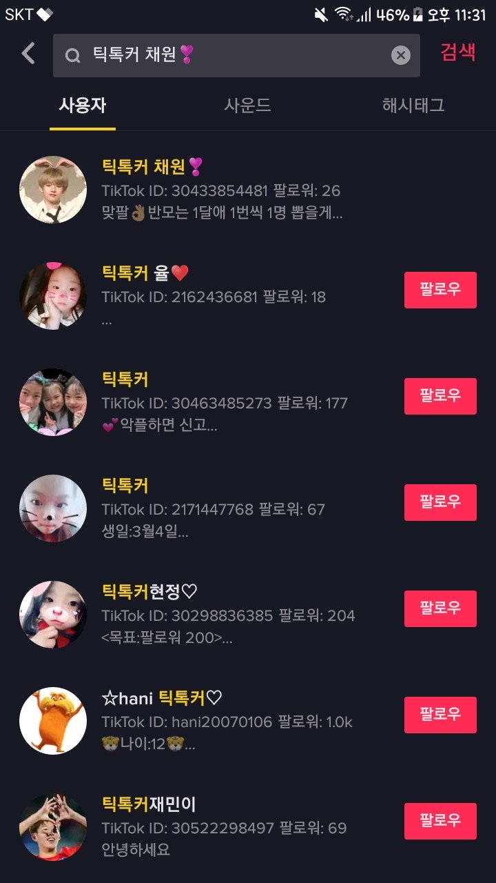 틱톡은 틱톡커 채원 치시고 맨처음 꺼 팔로우 해주세여