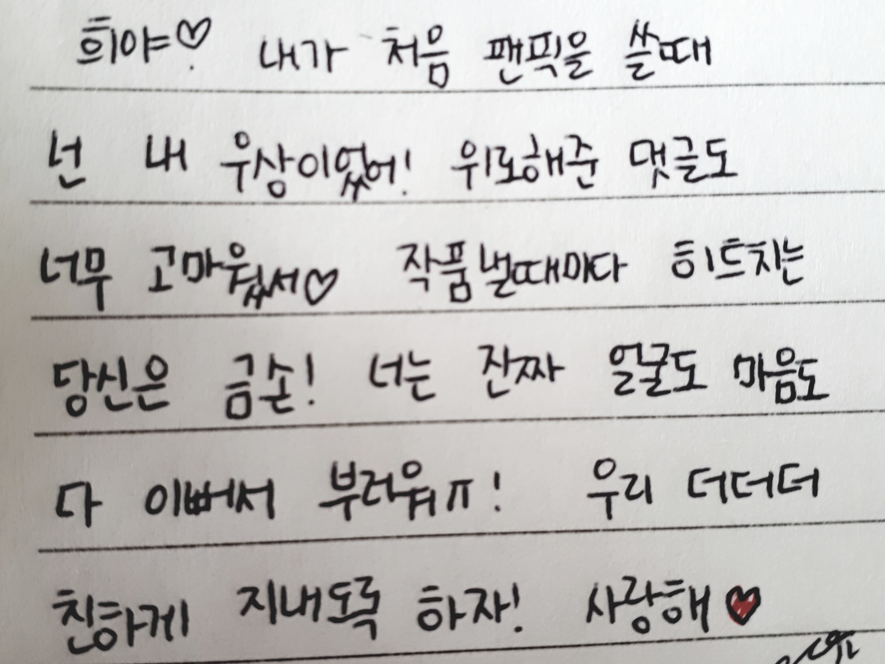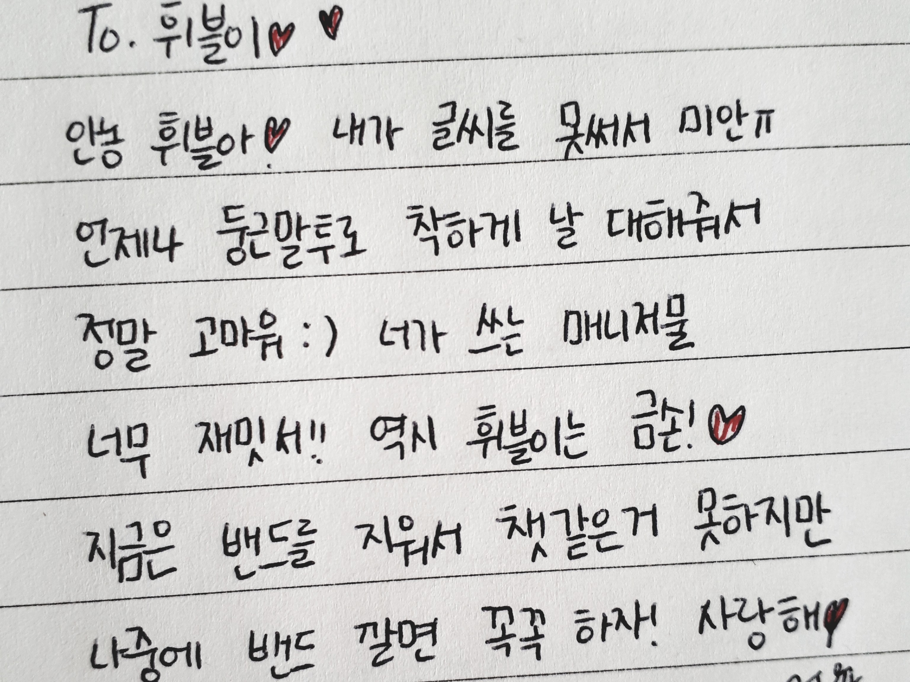 Je suis désolée pour la lettre en retard ㅠㅜ