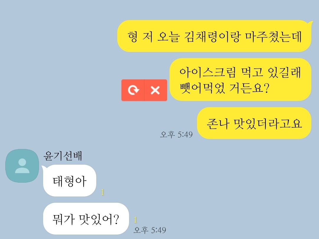 Saat aku tertawa dan meniup permen, Kim Taehyung mengerutkan kening dan memanggilku.