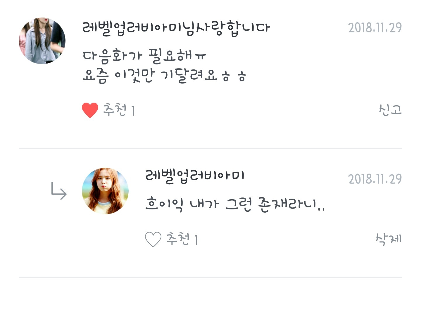 내 닉네임에 사랑한다구...ㅠㅠ