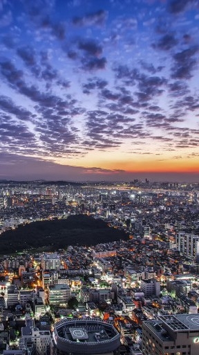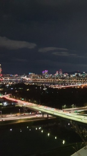 Sambil gemetar, seorang wanita duduk di tempat di mana dia dapat melihat pemandangan malam Seoul sekilas.