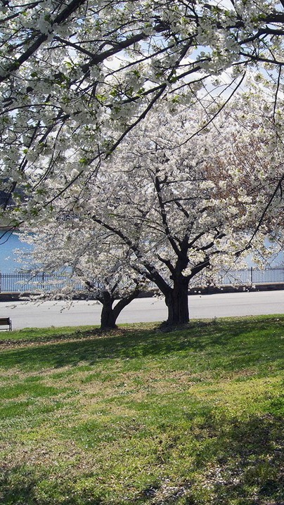 -Lalu keduanya saling memandang dan tersenyum di bawah pohon tempat bunga sakura berguguran.