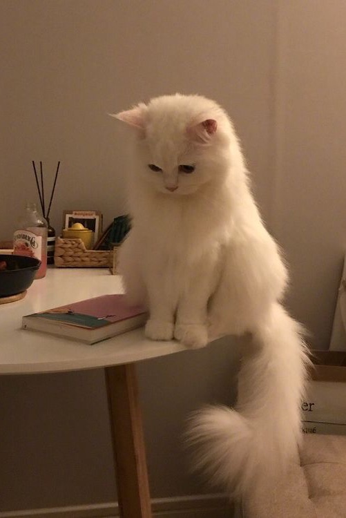 Jungkook, bayi kelinciku yang imut, lembut, dan berbulu halus, yang terlihat agak murung.