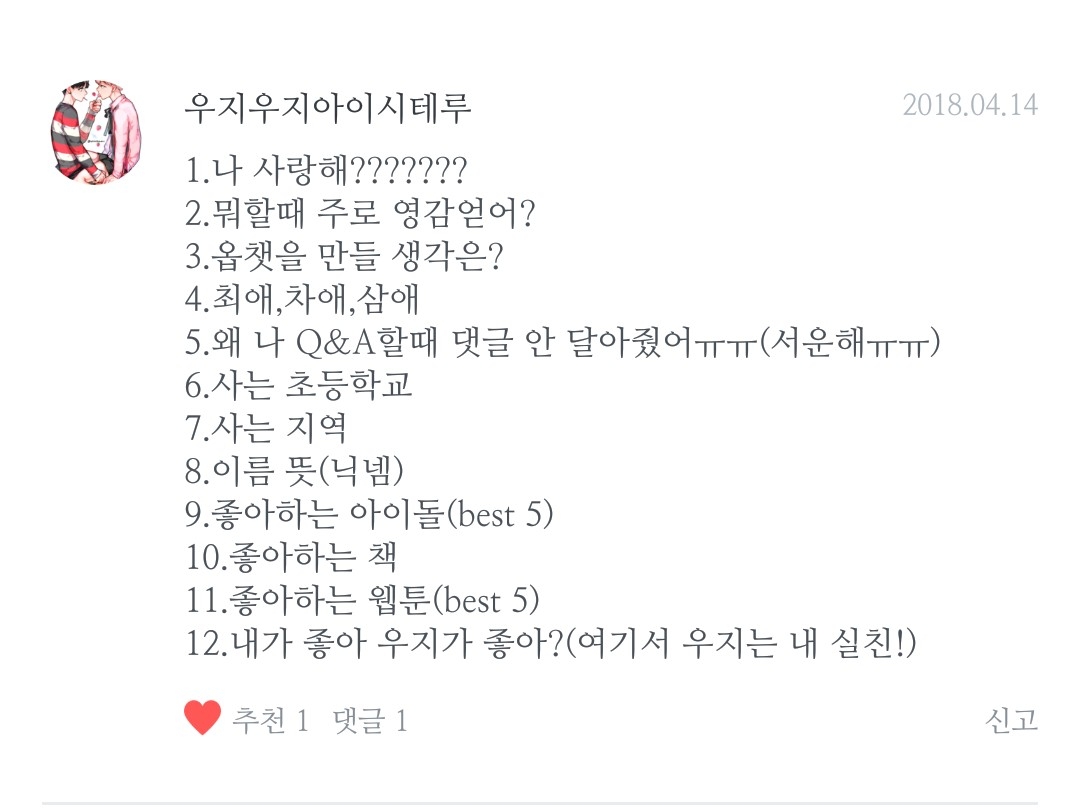 12. Kamu suka aku atau suka Woozi? (Di sini, Woozi adalah temanku yang sebenarnya!)