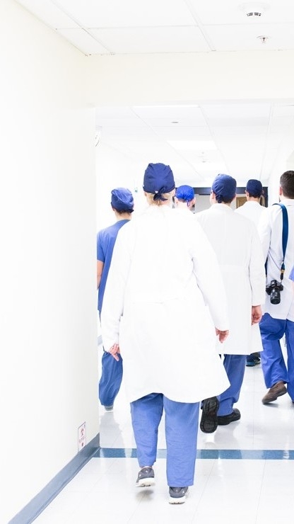 Aku sedang menunggu adikku di lobi rumah sakit, sambil mengobrol dengan saudaraku.