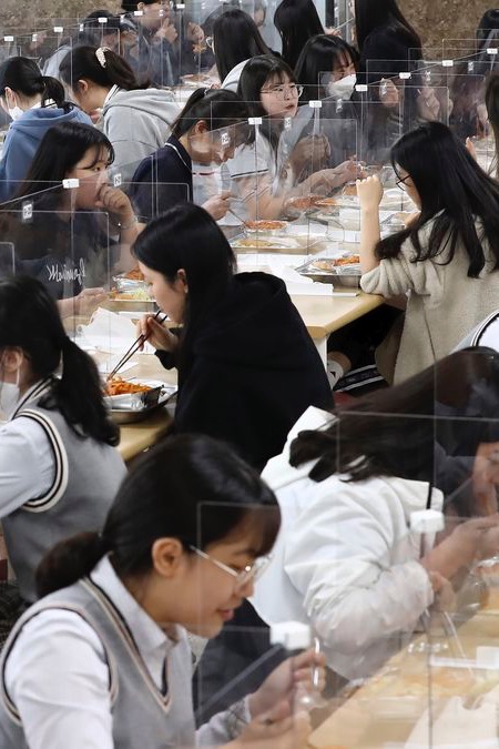 (Saat Changbin pergi, Chaeyoung dan aku berbalik untuk mengantre makan siang dan aku mulai mengobrol dengannya)