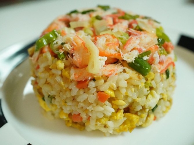 Taehyung mengambil satu suapan nasi goreng.