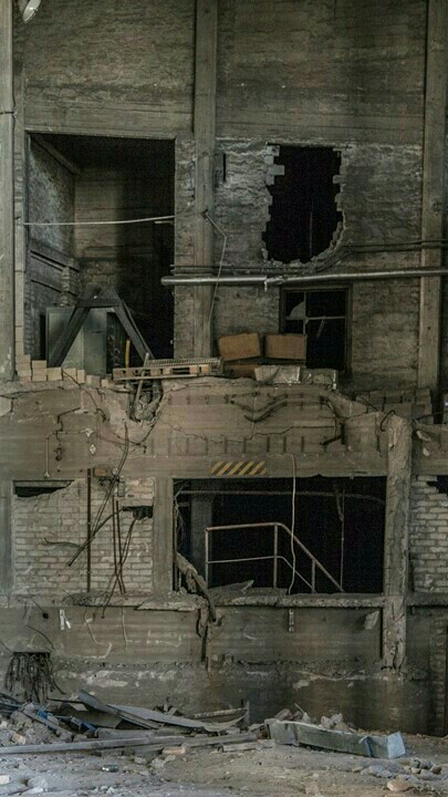 Di luar terang benderang, tetapi di dalam bangunan yang runtuh itu sangat gelap, jadi tidak menyilaukan.