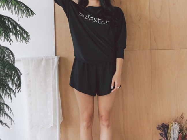 Oh tidak... perut si bungsu terlihat dan celananya juga terlalu pendek.