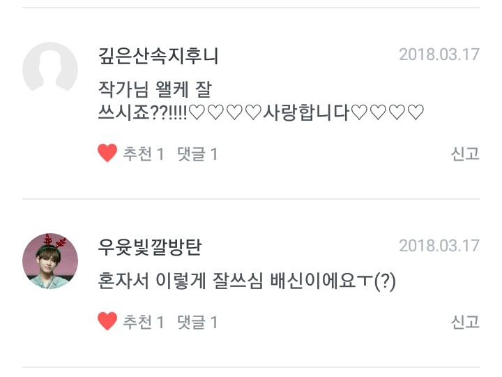 는 장난이구 여기서 댓자랑이 빠지면 섭하죠?