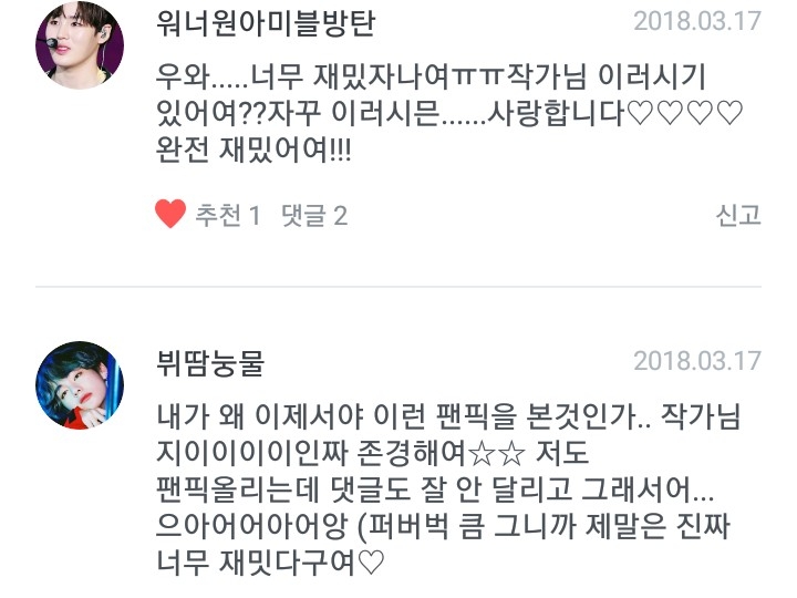 그리고 워너원아미블방탄님~!(재미있다니 정말 행복합니다♡♡)뷔땀눈물님!!(뷔땀눈물님도 팬픽 화띵하시구 제 팬픽 재미있게 봐주쎄용~!!♡♡♡)