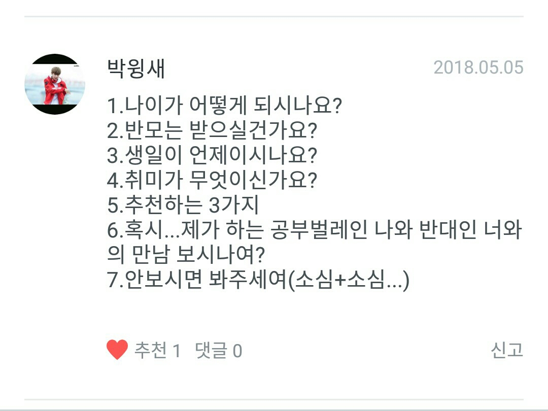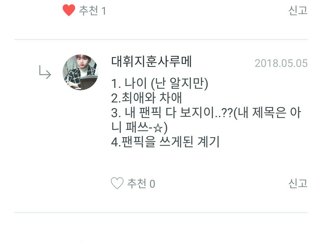 Prima di tutto, ho 14 anni!!! Secondo, il mio preferito è Daehwi, il mio preferito è Woojin!!! Terzo, okay, passiamo oltre... Quarto, io... ero attivo su un blog, ma ho smesso a causa di quel tizio, Yukjril, e mi è capitato di trovare questa app e la sto usando!!!