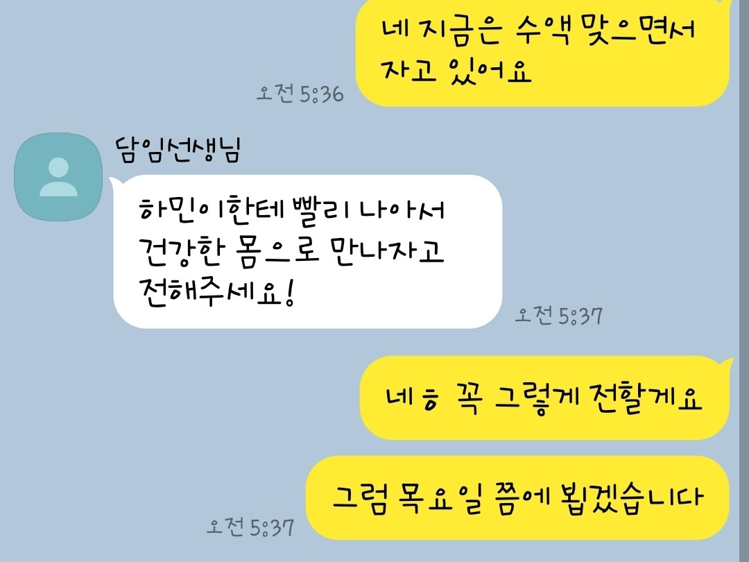 Penso che sarebbe una buona idea ricoverare Ha-min in ospedale perché soffre molto.