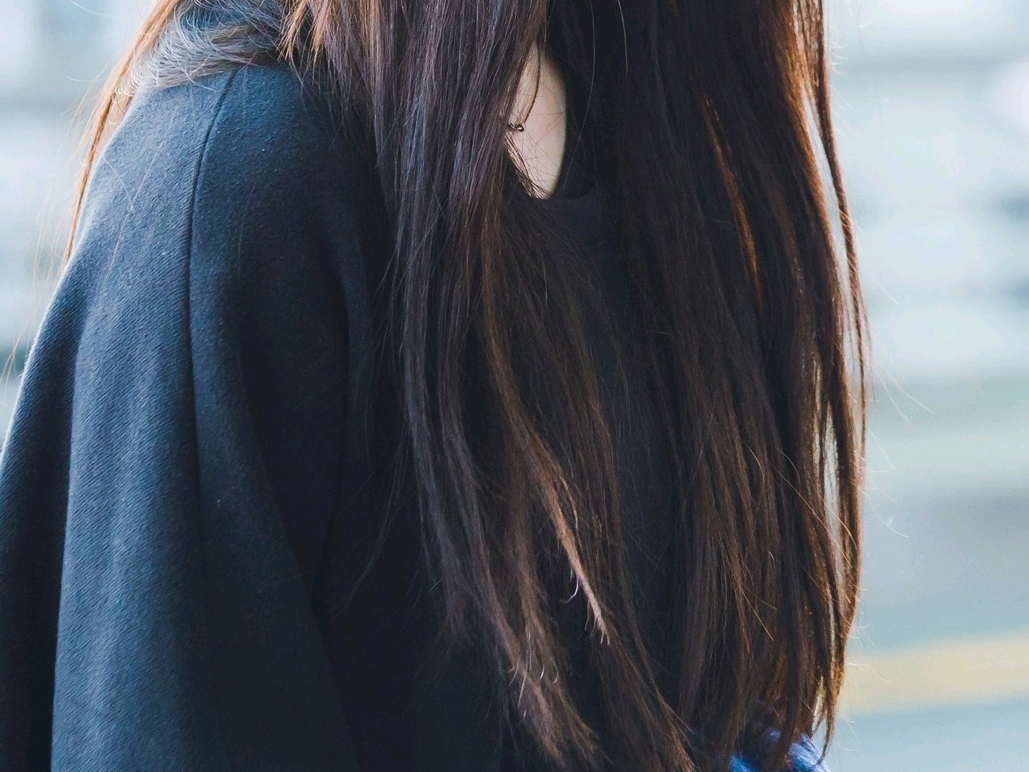 ジミンサムが壁に期待して携帯電話を見ていた。