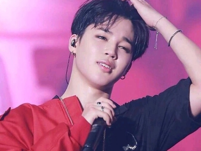 ジミンが笑顔で立っていると、誰かが彼の肩を叩いたので、彼は振り返った。