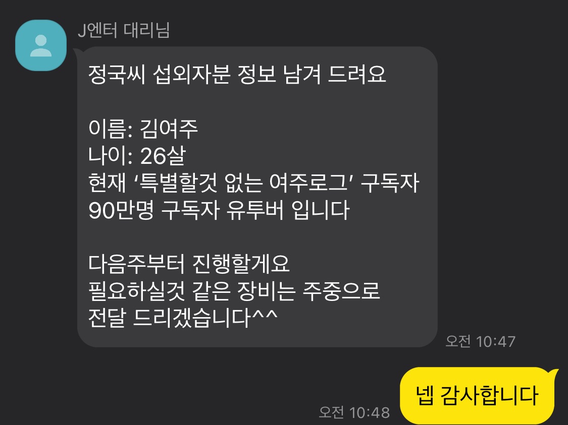 ジョングクさんの新しいコンテンツの話が出てきたが、もしかしたら8部作くらい違う方のように撮ってみてはいかがでしょうか