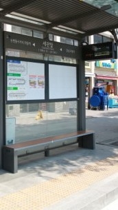 버스정류장에 도착하자마자 버스가 도착했다.