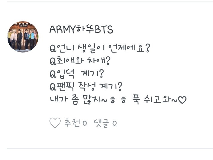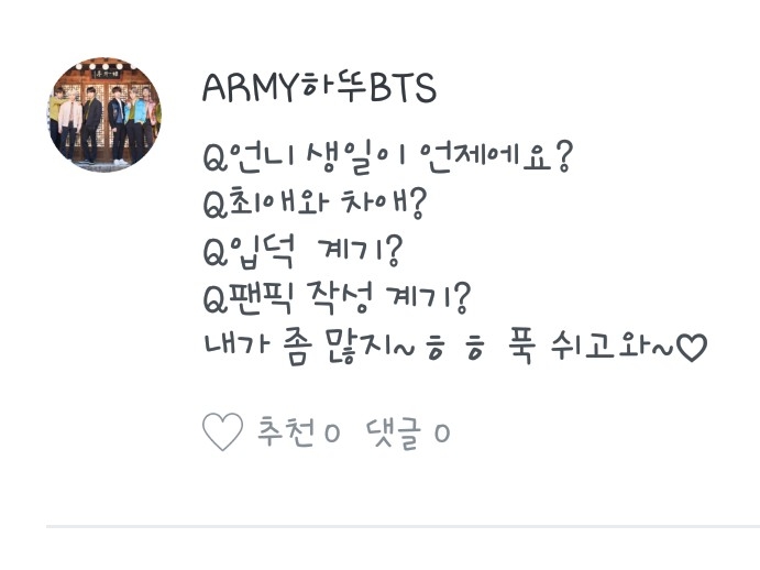 年齢は14歳です!中学校に行くのが好きではありません…ㅠ恋愛経験は……吸う…ㅠ…