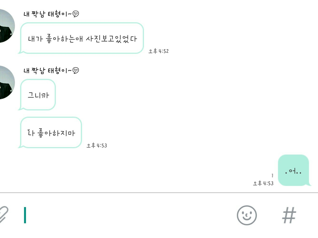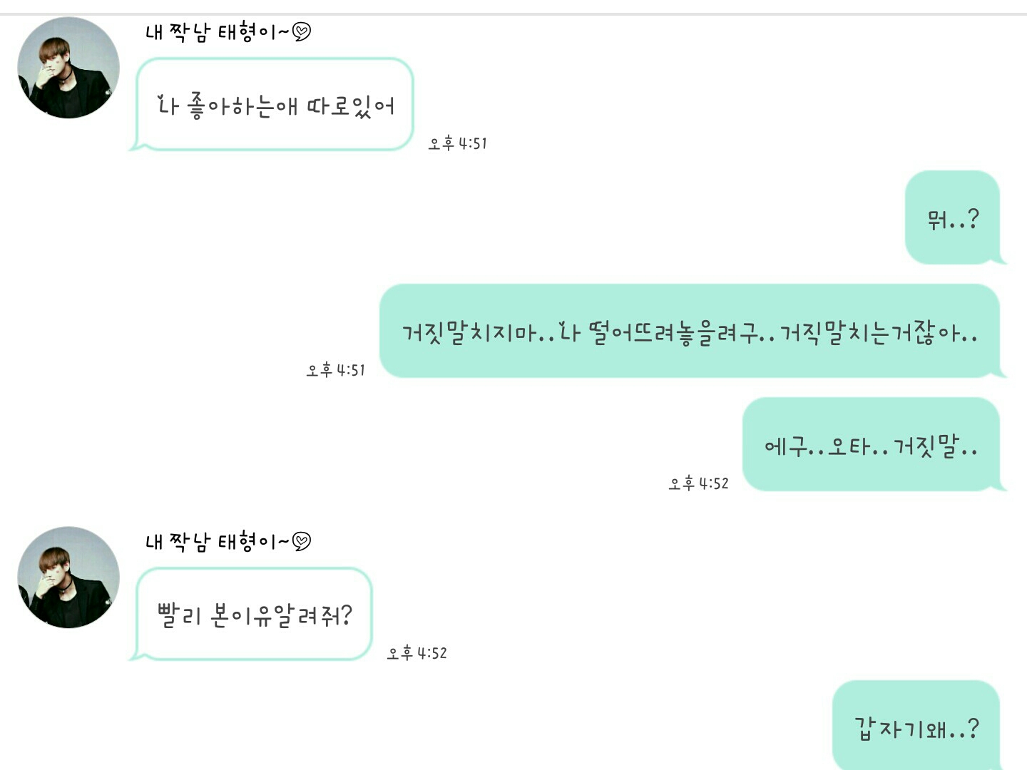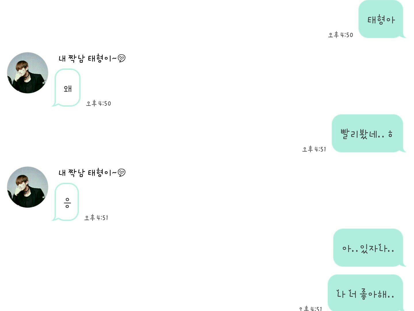 こんにちは…ヨジュヤ…私…昨日…キム・テヒョンからカトクで告白した…
