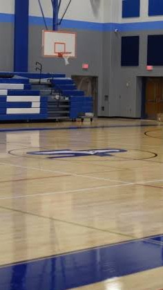 チャンビンとルーカスが体育館でバスケットボールをしている