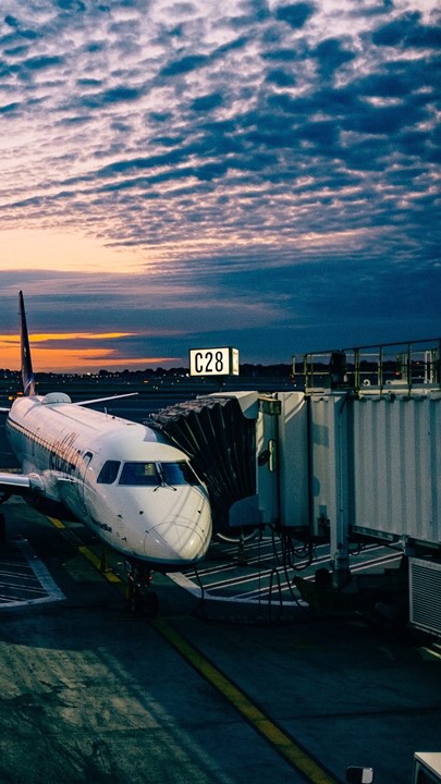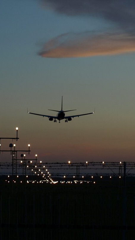 飛行機に乗る..