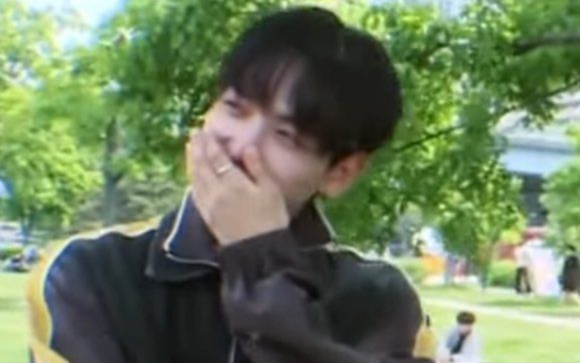 Jaehyun đỏ mặt, lấy tay che má khi Hayeon nhìn chằm chằm. Ánh mắt Jaehyun ánh lên vẻ ngượng ngùng và bối rối.