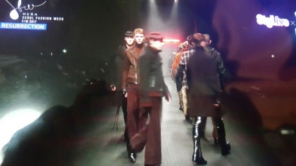 Changkyun đang quan sát các người mẫu trên sàn catwalk.