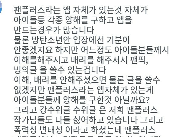 Thần tượng nào đã yêu cầu sự thông cảm trên ứng dụng này?