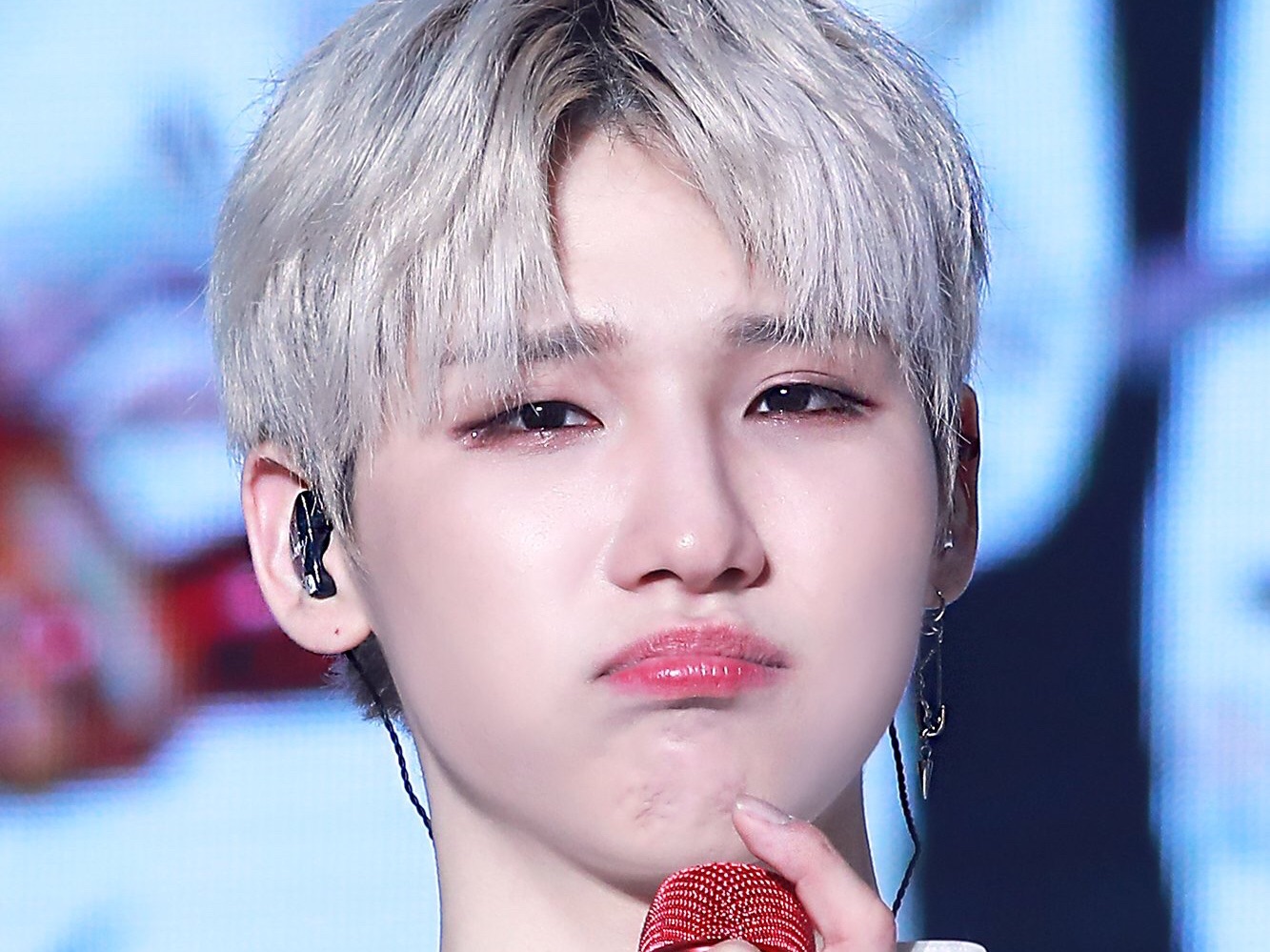 Donghyun làm điệu bộ dễ thương và kéo cổ áo của Woong.